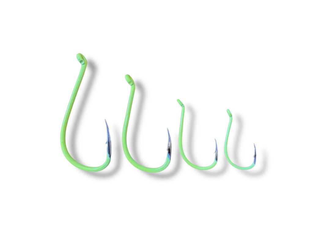 Tyto háčky jsou extrémně ostré a velmi lehké. Mají pevně přivřené očko pro větší pevnost. Háčky na sobě mají speciální antistatický gumový potah vytvořený speciální práškovou bezzápachvou barvou a ta významně minimalizuje elektrické pole, které se kolem nich běžně nachází a které jinak plaší sumce.