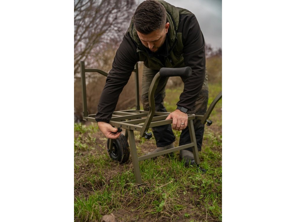 Má výsuvný rám, díky němuž je při přepravě kompaktní, ale stále nabízí velkou ložnou plochu pro přepravu objemných věcí, jako jsou postele a křesla. Rám je díky této jedinečné konstrukci skládací a menší než většina kaprových vozíků. Stojan na vozík obsahuje dva sloupky pro zavěšení kbelíků a tašek. Zabraňuje také sklouznutí obalu na pruty z trakaře. Kompletní s pohodlnými pěnovými rukojeťmi, odolnou pneumatikou a velkými patkami na nohách.