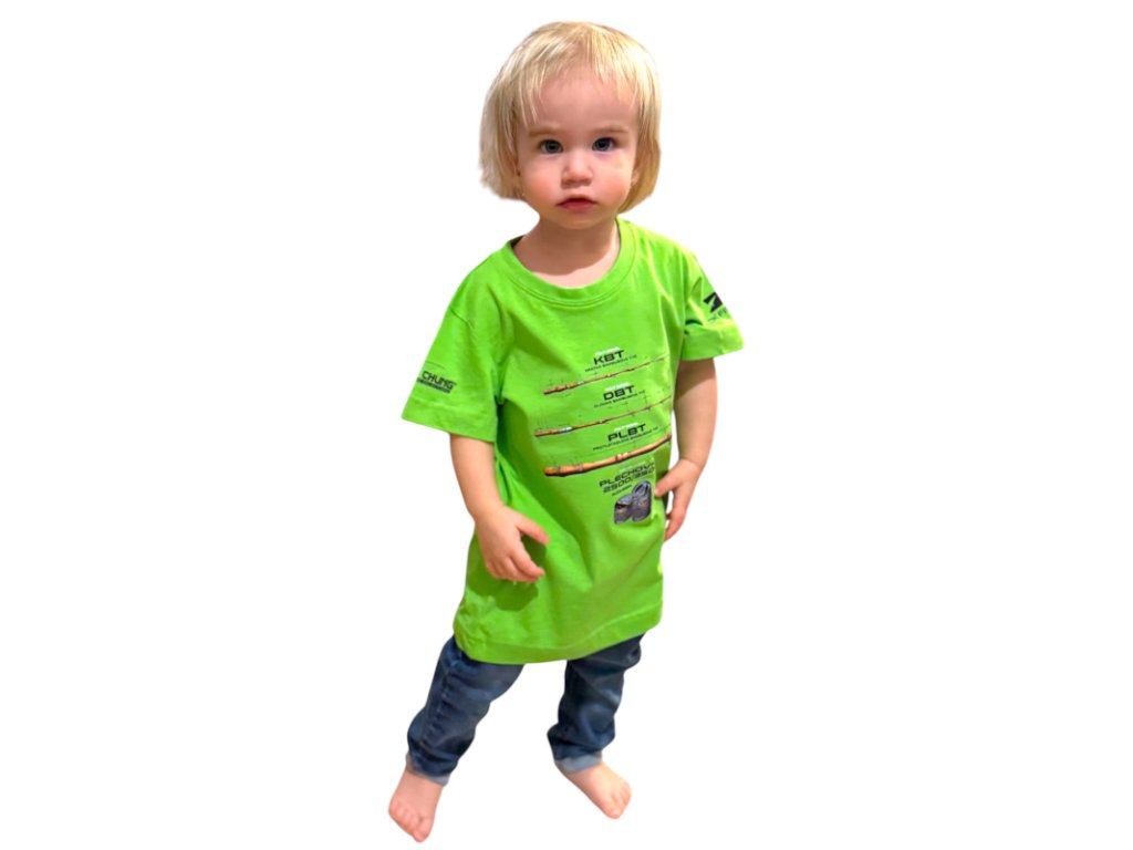Tričko s potiskem prutů a navijáku, na ramenou s logy ŠON CHUNG FISHING SELECTION a DK FISHING.