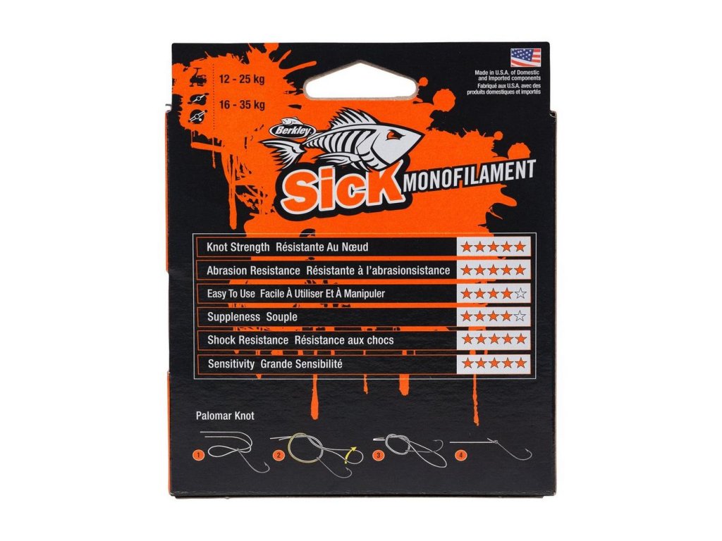 Berkley SicK Monofilament je speciální vlasec pro lov dravců, extrémně pevný, s vysokou pevností v uzlu a málo průtažný.