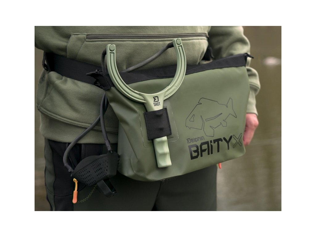 Zakrmovací ledvinka Delphin BAITYX je ideální doplněk pro každého rybáře, který hledá praktickou pomůcku pro zefektivnění zakrmování u vody. Tento produkt ocení zejména kapraři, jejichž hlavním krmením je boilies, ale ledvinka se vyznačuje všestranným použitím, takže do ní můžete vložit i jiné návnady či rybářské příslušenství. Delphin BAITYX je vyrobena z kvalitního EVA materiálu, který se vyznačuje zejména voděodolností a dlouhou životností. Na vrchní části se nachází voděodolný zip se dvěma běžci, které bezpečně udrží obsah ledvinky uvnitř. Vnitřní prostor je dostatečně prostorný, což vám umožňuje do ní vložit potřebné množství krmení. Díky voděodolným materiálům můžete do ní vložit předem předmočený nebo naboostrovaný boilies bez obav z přetečení. Ledvinka z přední strany disponuje gumovým poutkem na vrhací tyč či prak. K uchycení ledvinky kolem pasu slouží délkově nastavitelný popruh s masivním upínacím klipem. Tmavě zelený design ledvinky je doplněn decentní černou grafikou s originálním OutLINE logem kapra. Technické parametry: Rozměr tašky: 38x21x15cm Objem: 12lDoplňkové parametry