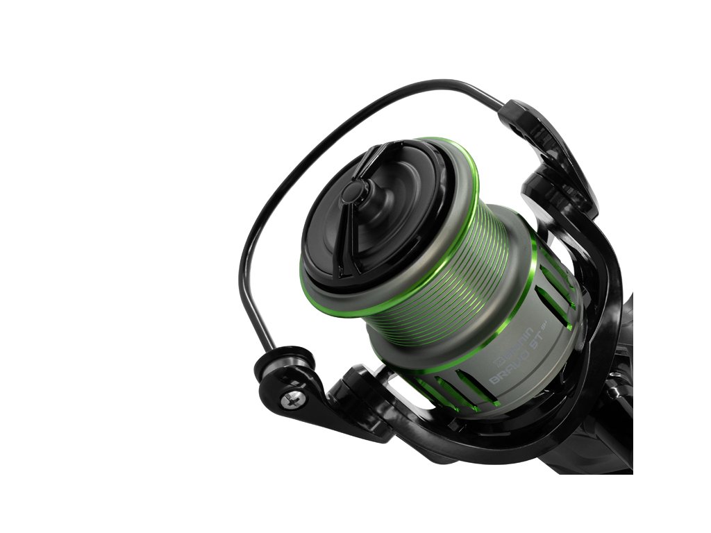 Univerzální naviják s volnoběžnou brzdou, který se skvěle hodí zejména pro lov na feeder, nicméně můžete jej použít také při jemnějším lovu na těžko na menší vzdálenosti. BRAVO bezpochyby zaujme svým moderním designem v šedo-černé barvě s výraznými zelenými prvky, díky čemuž bude zpestřením nejedné rybářské výbavy. Naviják disponuje 7 kuličkovými ložisky (6+1), zajišťujícími lehký a plynulý chod. Převodový poměr 5.5:1 se postará o bezproblémové a rychlé stahování montáží či zdolávání vašich úlovků. Pevná a citlivá přední brzda napomůže při tlumení výpadů ryb a citlivá volnoběžka přináší komfort na břehu, kde pouze jedním stiskem zadní páčky získáte uvolněnou cívku připravenou k záběru vaší cílové ryby. Otočením zadního regulátoru si můžete volnoběžnou brzdu dokonale vyladit podle svých potřeb. Kvalitní matná kovová cívka je záměrně mělká a důvodem je menší potřebný návin vlasců nižšího průměru, což přesně vyhovuje požadavkům doporučených rybolovných technik. Navíc je doplněna o pevný kovový klip pro zachycení vlasce při náhozech nebo po ukončení lovu. Pevný překlapěč a perfektně vytvarovaná kovová rolnička v černé barvě vylepšují celkovou odolnost navijáku. Černá kovová klika je ukončena menším a jemnějším gumovým madlem dodávajícím zvýšenou citlivost během navíjení. Technické parametry: Delphin BRAVO 5T SH Kapacita cívky mm/m: 0.18/359, 0.20/291, 0.25/186 Převodový poměr: 5.5:1 Počet ložisek: 6+1 Hmotnost: 394g Delphin BRAVO 6T DP Kapacita cívky mm/m: 0.18/492, 0.20/398, 0.25/255 Převodový poměr: 5.5:1 Počet ložisek: 6+1 Hmotnost: 425g Delphin BRAVO 7T DP Kapacita cívky mm/m: 0.20/491, 0.25/314, 0.30/218 Převodový poměr: 5.5:1 Počet ložisek: 6+1 Hmotnost: 468gDoplňkové parametry